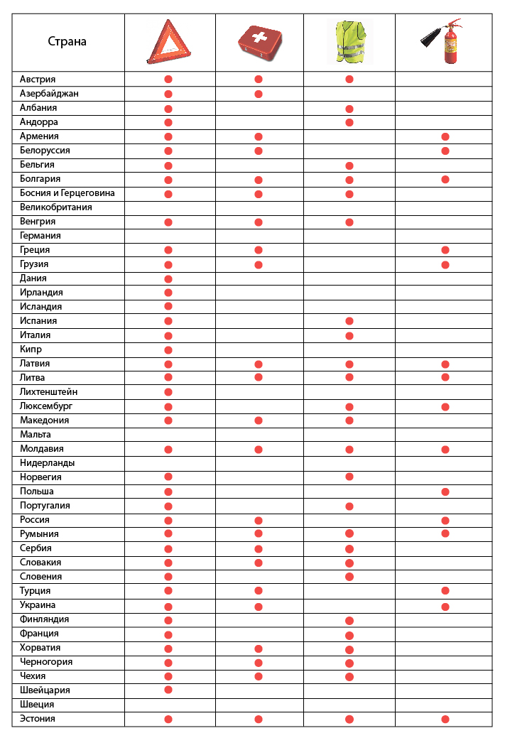 Отзыв. Отсутствие оборудования в любой из стран не означает, что Вас не пустят в страну. Могут просто предупредить вы же турист, а могут предъявить штраф. Мы советуем, конечно, взять с собой все оборудование по списку и лишить себя головной боли. Хорошего самостоятельного автопутешествия!