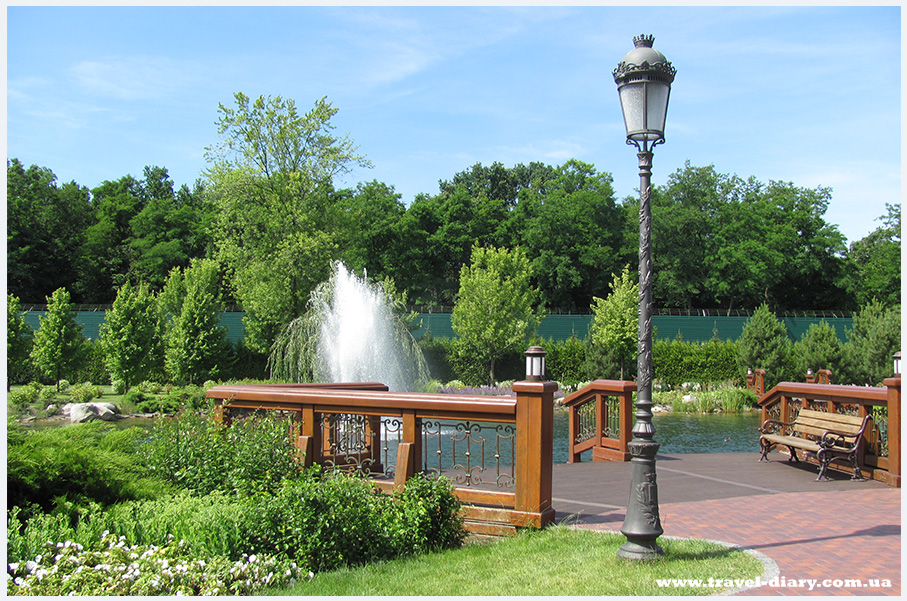 Вдоль пруда разместились домики для уток, цветут лилии одним словом красота невиданная… И дня будет мало всё посмотреть в Межигорье, территория действительно огромная. Предприимчивый народ сдаёт в прокат велосипеды, по дорожкам резиденции ездят паровозики, машинки и даже тук-туки)). Кстати, у кого нет своего велосипеда можно взять его в прокат, мы собрали все прокаты Киева в одну статью с адресами и телефонами кому будет интересно читайте здесь. На мой взгляд это будет дешевле чем на месте.