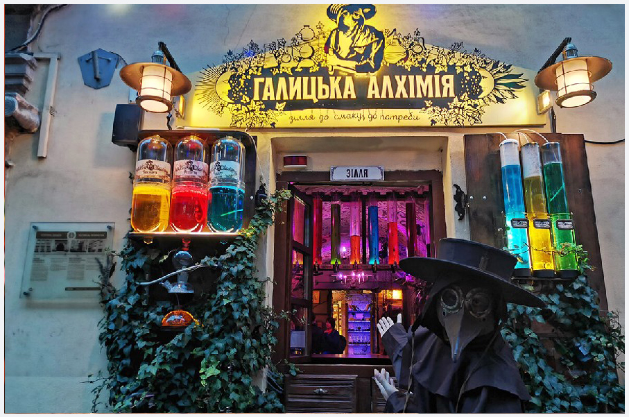 В «Галицкой Алхимии» можно попробовать крепкое снадобье на любой вкус и любую потребность. Всего в заведении есть 10 различных по вкусу и назначению снадобье: Разврата, Приворотное, Оборотное, Забвение, Молодильное, Размера, Греховное, Неведимка, Бессмертие, Летательное).