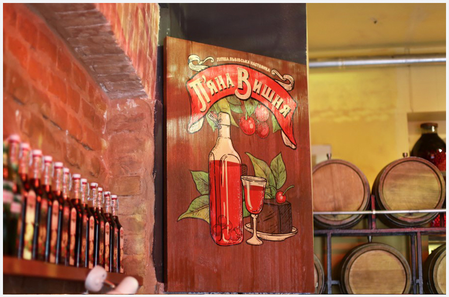 Вишневая львовская настойка издавна считалась неотъемлемая частью старого Львова. Ее настаивали в каждом доме. Каждая львовская хозяйка делала эту настойку, и каждая барышня знала ее вкус. Напиток вкусный, и крепенький. Сделан по традиционному рецепту на лучшем коньячном спирте из отборных вишен. Хорошо подходит к зимам или другим приключениям. Настойку можно взять обычную и горячую. Также можно купить настойку в бутылках от 100 миллилитров до 1 литра.