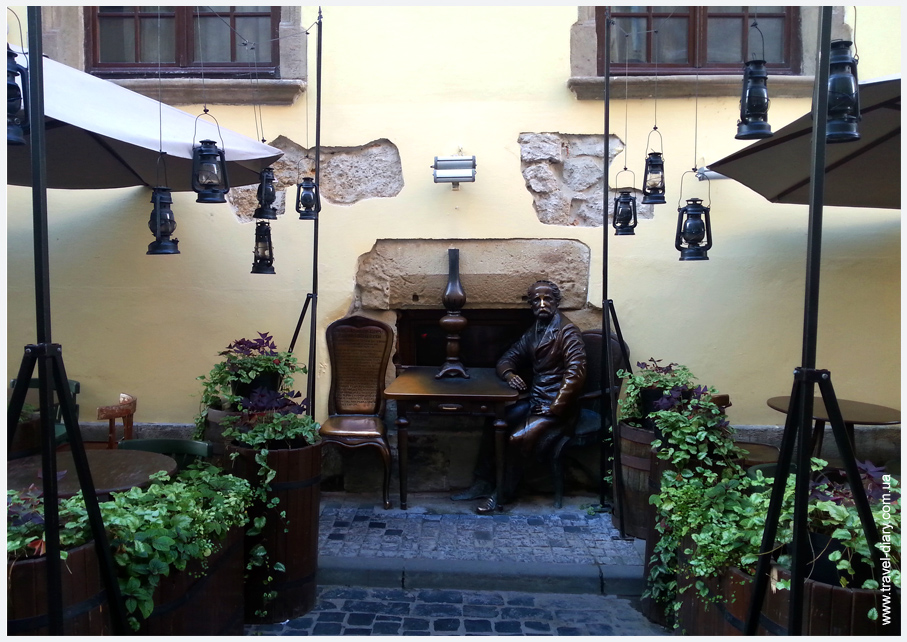 Тематические кафешки это фишка Львова. Интересный дизайн, актёрская игра официантов всё в целом смотрится очень эффектно. Нас приковывали наручниками, требовали какое-то «Гасло», в третьем вообще меню без цен принесли! В общем, издевались, как хотели!