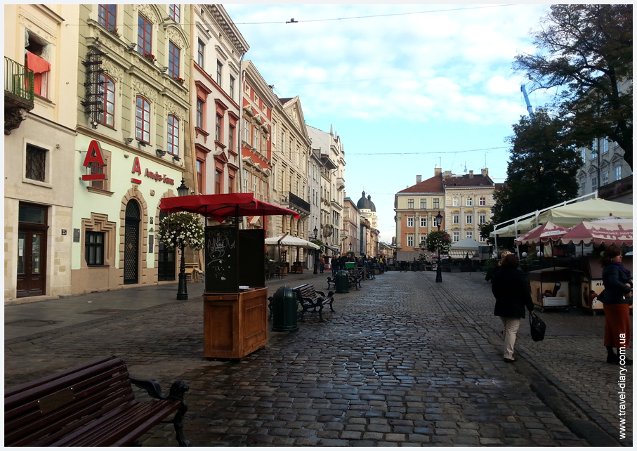 Взбодрившись, мы направились к главной площади Рынок. Она считается сердцем города. Если снимать жилье в центре Львова, то всё достаточно близко и можно дойти пешком. Тем более, чтобы прочувствовать город и его особую атмосферу нужно внедриться в него так сказать изнутри. Что мы и сделали! Наша квартира находилась прямо возле площади Рынок на Староеврейской улице. Хорошие условия за 300грн в сутки с трёх человек. Обычно заселение в 12 дня, но нас заселили в 9 утра, это ещё один плюс поездки в будний день.