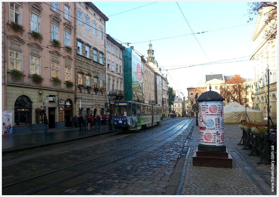 Наша поездка во Львов выпала на будние дни и нам без проблем удалось купить билеты на поезд. От Киева до Львова приблизительно 600 км. Купейные билеты в обе стороны обошлись в 300 грн. за человека. Дорога заняла около 8-ми часов. Хорошо, что есть ночной поезд и в 7-мь утра мы уже были на месте. Львов утром по-своему прекрасен.